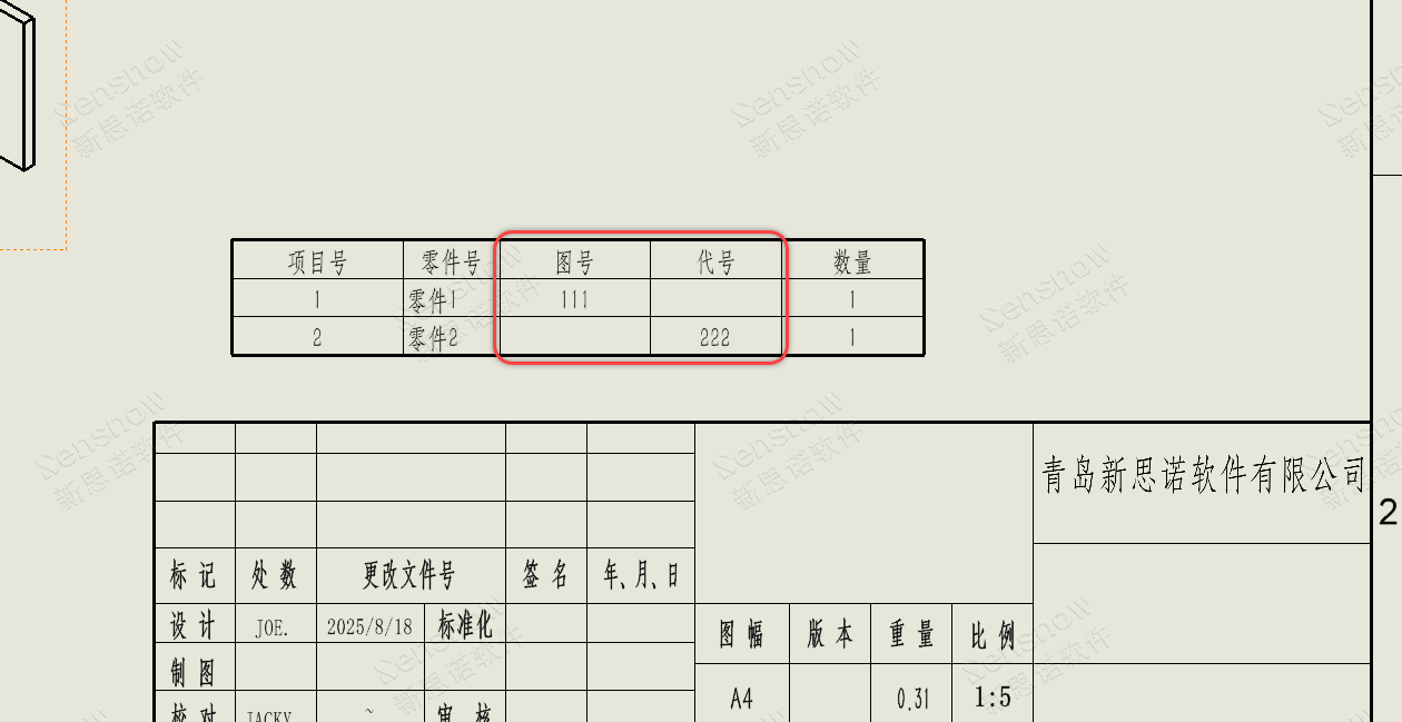 而另一种情形则是设计人员拿到甲乙方提供的图档文件与自己企业标准化模板不对应的现象,最常见的就是企业实施的零部件编码叫做“图号”,而甲乙方的企业实施的零部件编码叫做“代号”,这就导致我们在生成 BOM 清单后在我们自己企业的标准模板中“图号”这一栏的属性显示为空白,因为甲乙方使用的属性是“代号”。