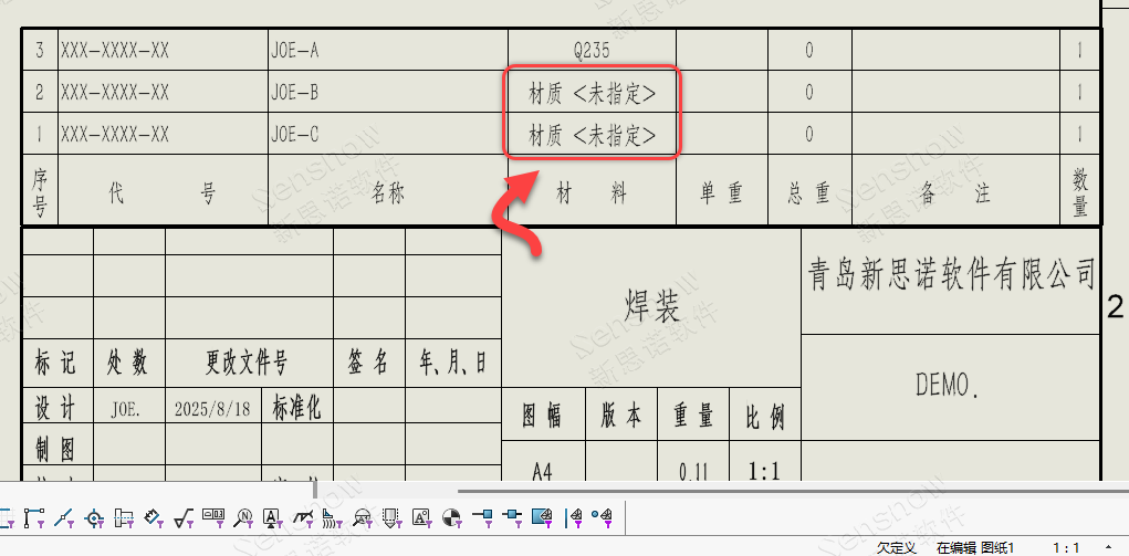 在我们做方案的初期,很多零件的材质是不能直接确定的,所以我们一般都不会对这些零件去指定材质,只有在方案通过后才会指定材质。这时的 BOM 中关于材质这一栏将显示“材质 <未指定>”字样,令人很茫然,在给甲方确认的时候也经常会被问到,确实对于前期的方案设计和报价用途的一些 BOM 无需指定材质,也无需显示未指定这个字段,设计人员都希望对于未指定的材质显示为空白,仍然可以一目了然的甄别哪些零件没有指定材质。