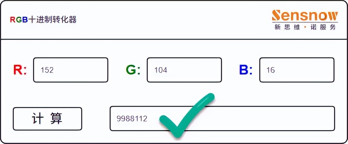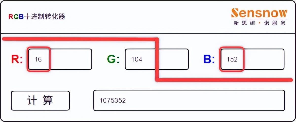 STEP2:这里以柔蓝为例,RGB 分别是:16/104/152;登录会员系统找到 RGB 转换十进制程序,RGB 中分别输入:152/104/16,需要交换 R/B 值!得出计算结果:9988112 进行记录;